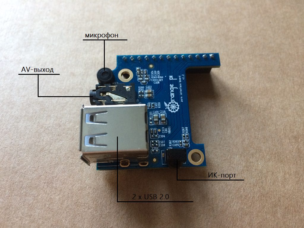 На плате Interface board распаяно два дополнительных порта USB, инфракрасный порт, микрофон и аналоговый аудио-видео выход.