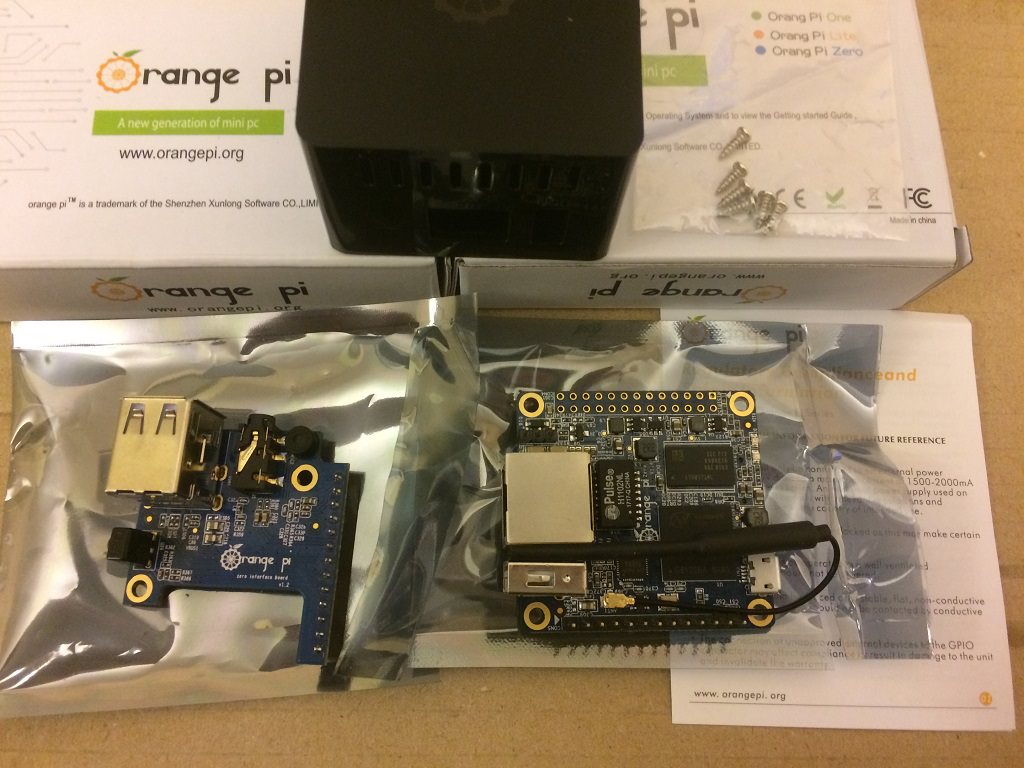 Свой экземпляр Orange Pi Zero я заказывал в виде комплекта из самого микрокомпьютера, платы расширения Interface board и пластикового корпуса.