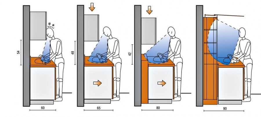 При выборе подсветки для столешницы в рабочей зоне учитывают много факторов, в том числе расположение кухни, вид мебели, стоимость. Есть несколько общих полезных рекомендаций: