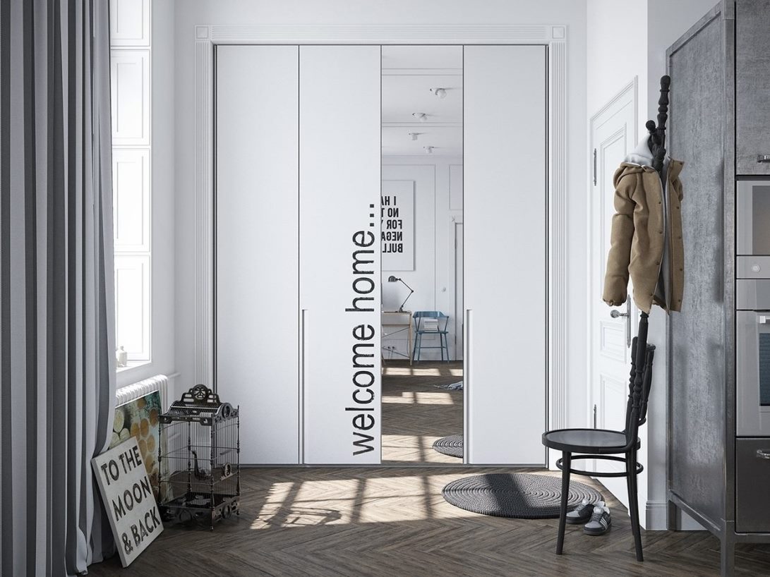 Белый в прихожей недостаточно практичен, поскольку из-за частого загрязнения он быстро утрачивает чистоту оттенка. Нижнюю часть обычно отделывают панелями.