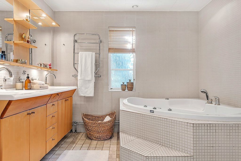 Если ванная большая, то при расчетах имеет значение площадь. Формула проста: