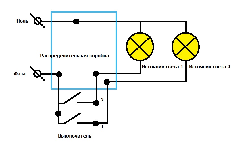 Схема с двухклавишным выключателем