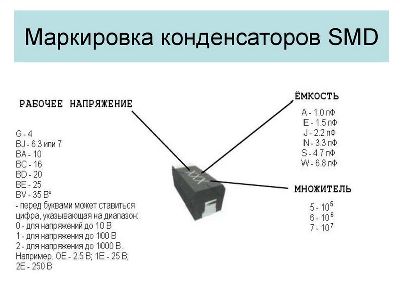 В зависимости от вида накопительного смд устройства, различают несколько методик их маркировки.