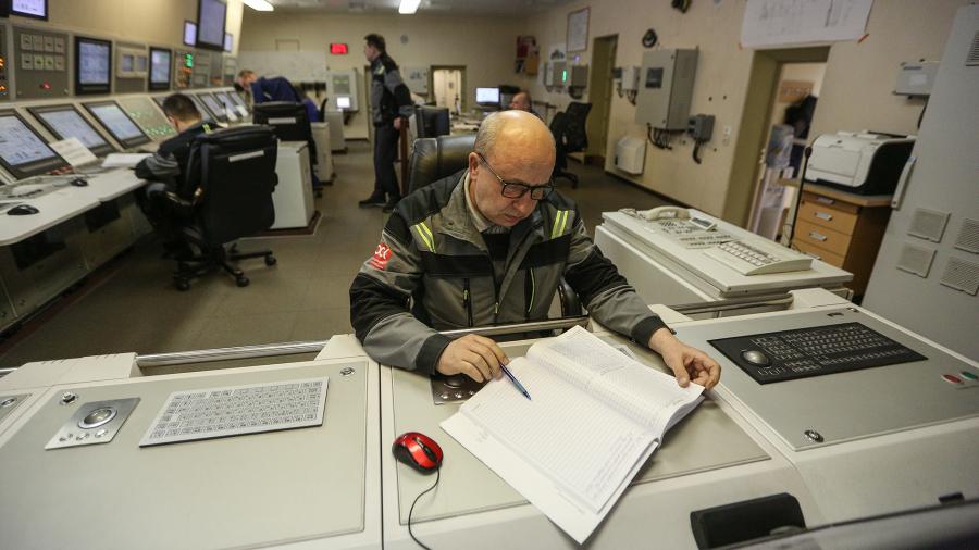 Сотрудники в центральном пункте управления (ЦПУ) плавучего энергоблока (ПЭБ) «Академик Ломоносов»
