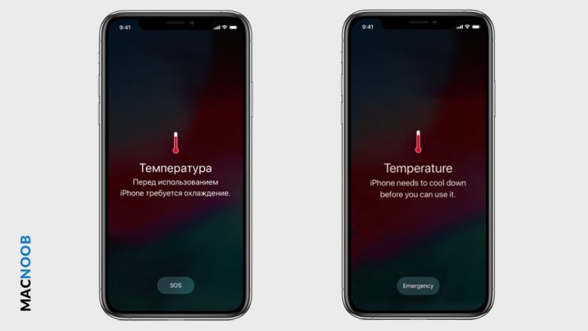 На английском языке оно выглядит как «iPhone needs to cool down before you can use it».