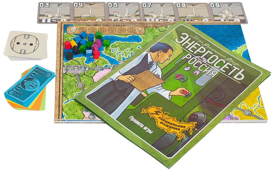 - Настольная игра «Энергосеть» — это развлечение для большой компании. Игрокам предстоит подключать города к электросети, участвовать в аукционах, чтобы купить новую электростанцию и развивать свою корпорацию. Это спокойная стратегическая игра для любителей математики, логики и анализа.