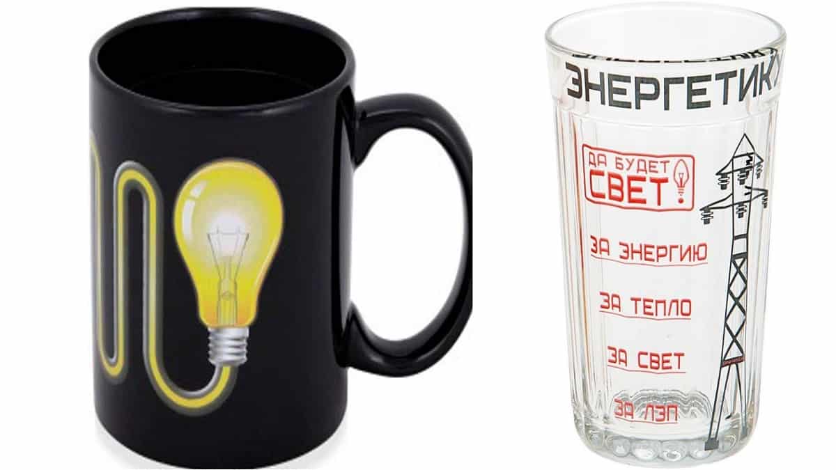 Чашку, кружку или бокалы под пиво на электротехническую тематику, что подарить из перечисленного, лучше выбирать исходя из предпочтений электрика к тем или иным напиткам.