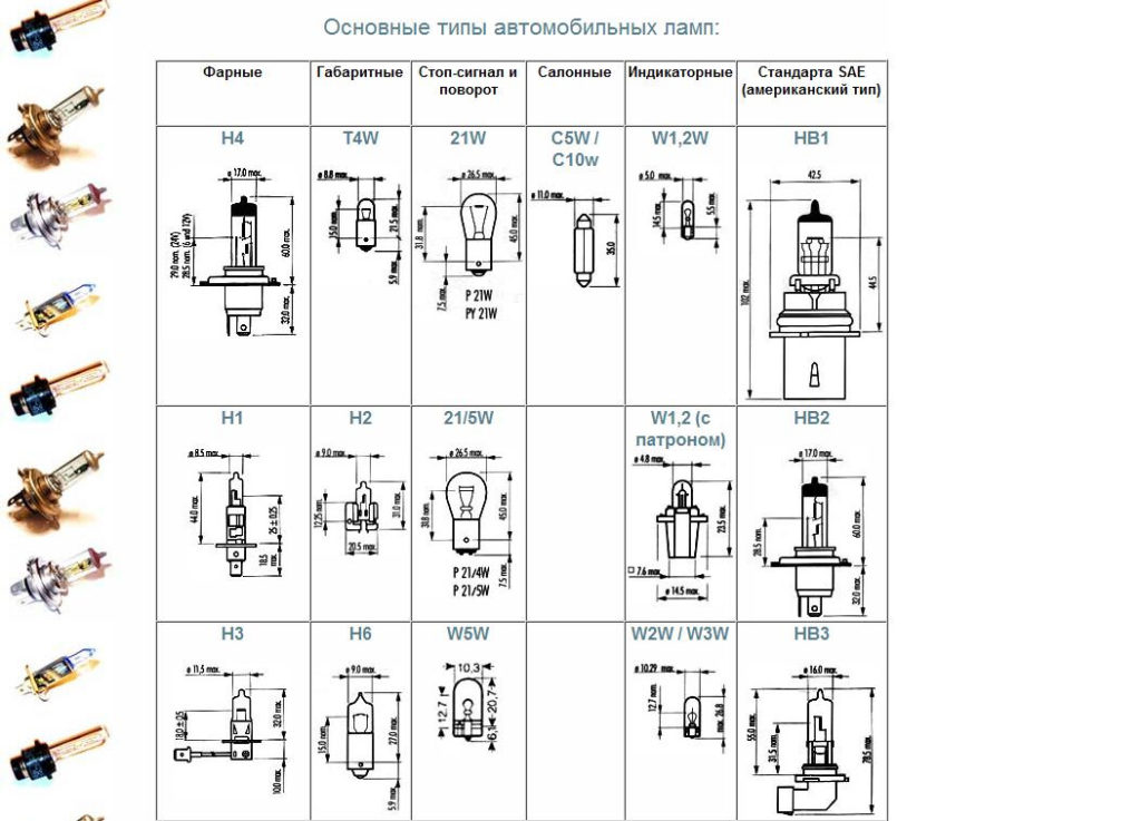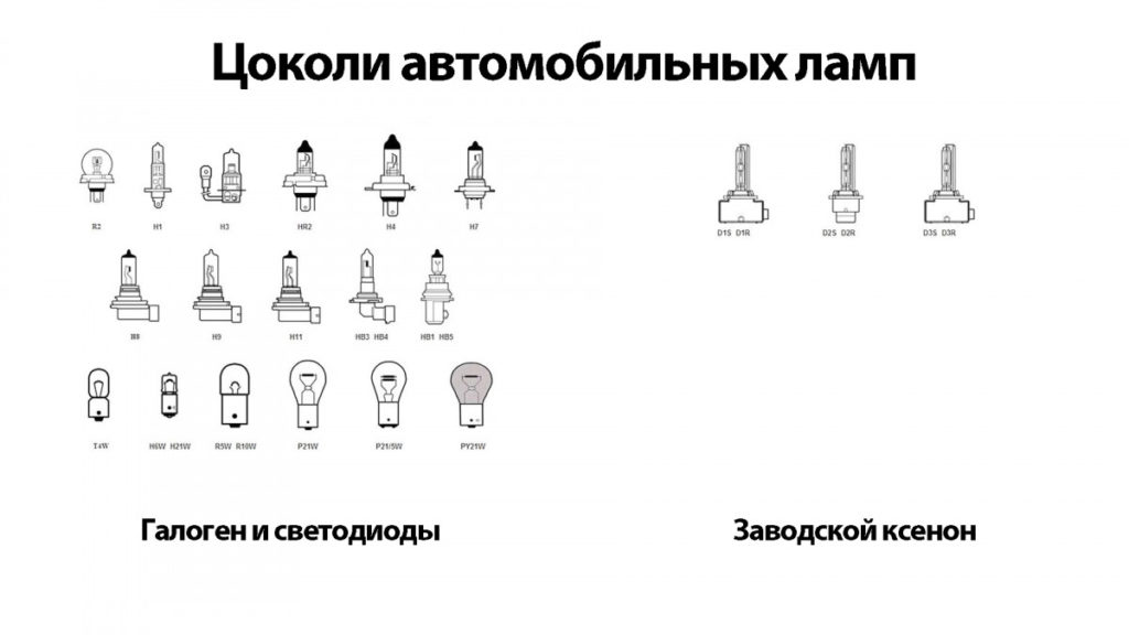 В процессе приобретения важно сравнить цоколи старой, снятой с авто лампы с покупаемой. Также совместимость можно узнать из таблицы