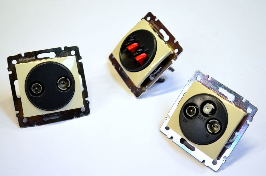 Любая розетка имеет корпус, на котором расположены крепежные элементы, плата и F – соединение в виде телевизионного штекера.