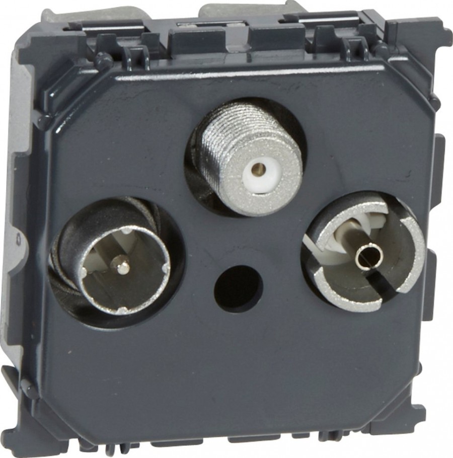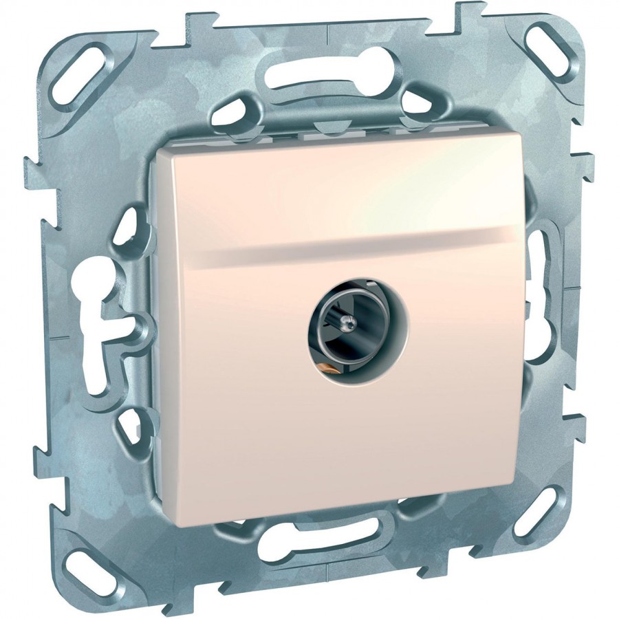 Оконечная розетка не имеет сквозного канала, она предназначена для непосредственного подключения к нагрузке. В ее электрической схеме могут присутствовать согласующие электронные элементы, позволяющие уравновесить волновое сопротивление линии и телевизора.