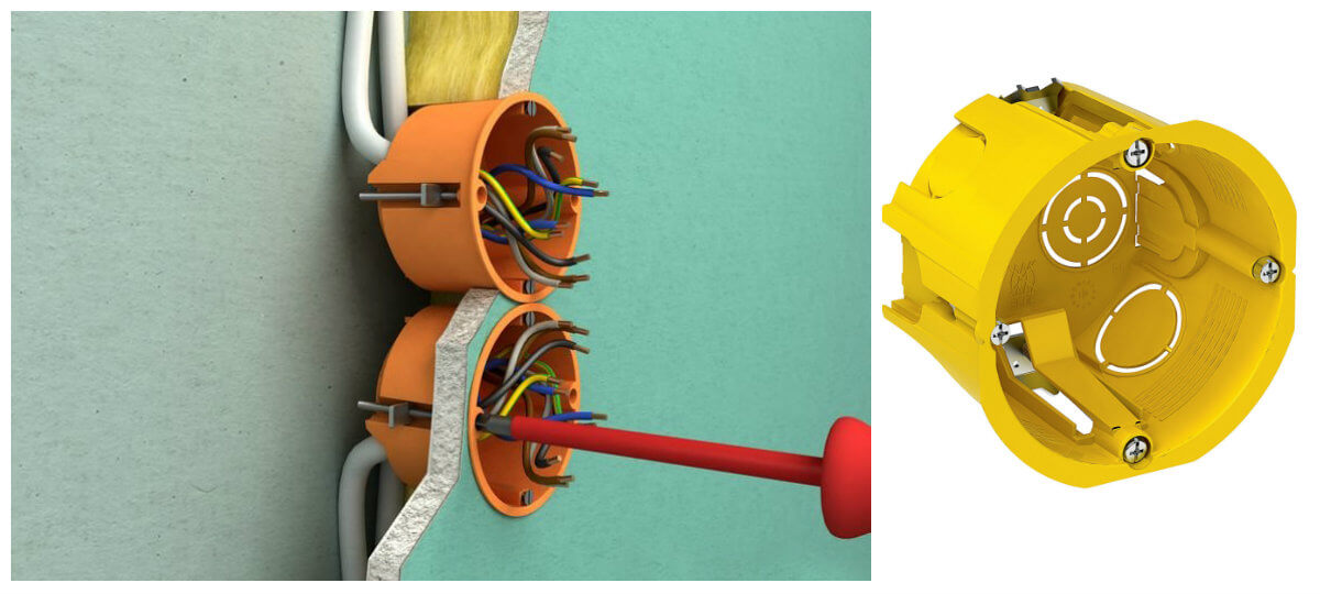 Потребность в электрификации помещений, выполненных из гипсокартонных стен и потолков привела к созданию специальных аксессуаров, позволяющих монтировать электрические выключатели, розетки и другие средства энергообеспечения с учётом специфики материала.