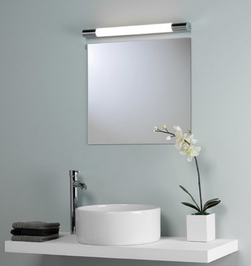 Подсветка Led считается наиболее выгодным и практичным вариантом для ванной комнаты. Обладает массой достоинств, среди которых до 50 тыс. ч. работы, употребление небольшого количества энергии, высокая светоотдача (до 150 лм/Вт). В отличие от люминесцентных, загораются сразу после нажатия выключателя и не раздражают глаза.
