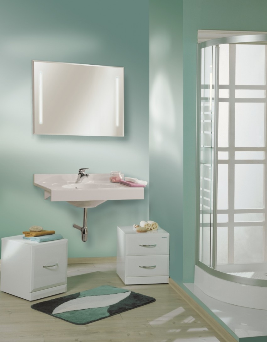 Если нужно сделать перестановку мебели, стекло в раме вместе с полочками для туалетных принадлежностей осторожно снимается, а потом помещается на новое место в квартире. Это очень удобно, особенно при переездах