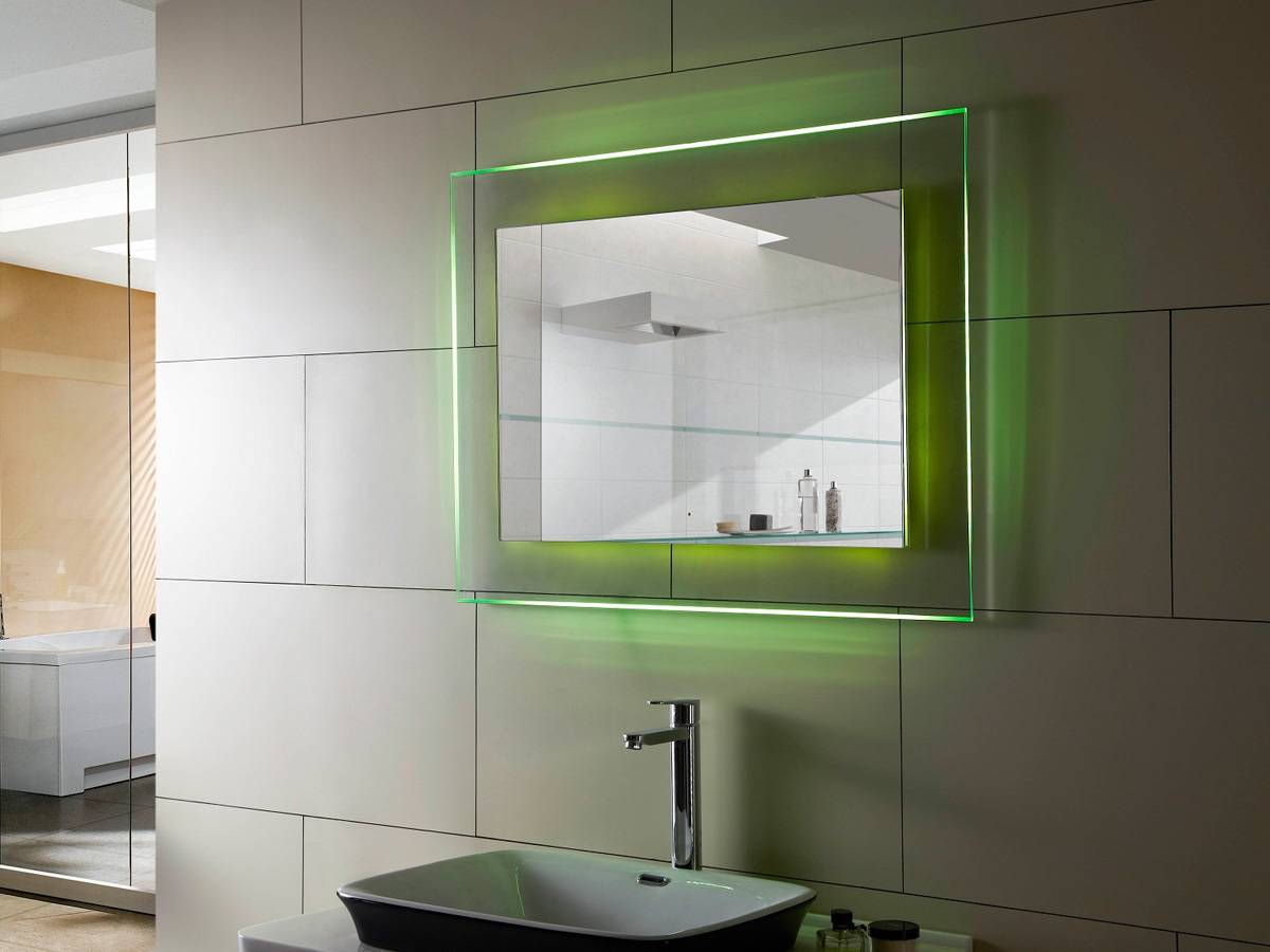 - Подсветка светодиодная зеркала в ванной размещается на любых поверхностях. Она имеет белое или цветное свечение, высокую светоотдачу, большой срок службы. Недостаток – обходится недешево.