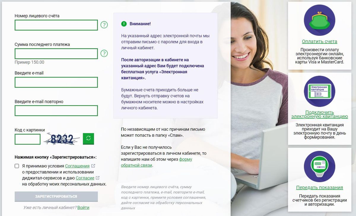После регистрации можно вполне свободно оплачивать свет с помощью личного кабинета.