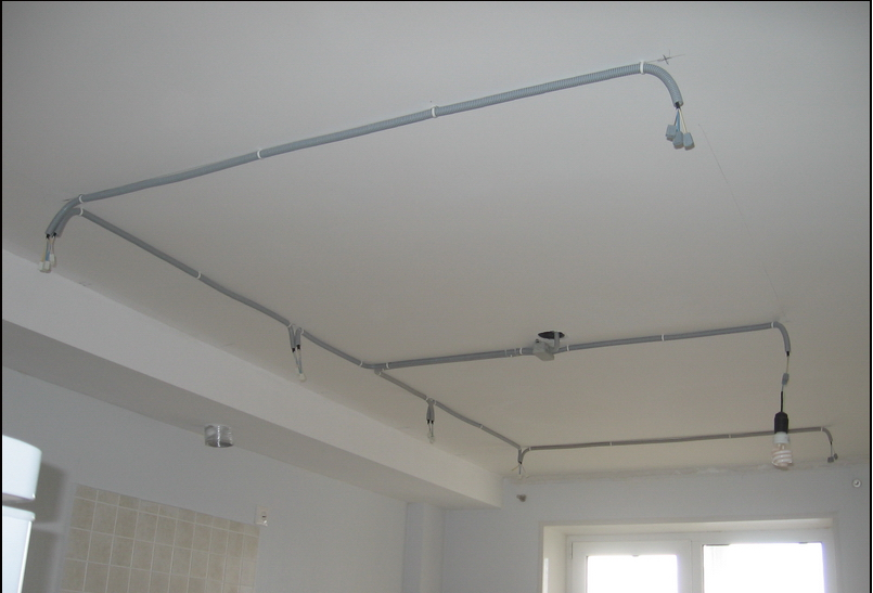Для монтажа скрытой проводки штробить потолок не нужно, и это очевидный плюс!