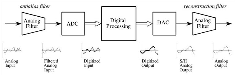Большинство сигналов, с которыми сталкиваются инженеры – электронщики, являютсянепрерывными. Аналого-цифровое и цифро-аналоговое преобразования позволяют цифровым компьютерам обрабатывать эти сигналы. Цифровые сигналы отличаются от соответствующих непрерывных сигналов двумя основными параметрами: они дискретизованы и квантованы. Естественно, что при переходе от аналогового сигнала к цифровому, часть информации теряется. Все это зависит от частоты дискретизации, количества бит при квантовании сигнала по уровню и типа аналогового фильтра, применяемого при преобразовании сигнала