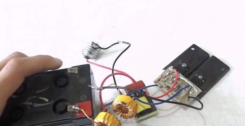 Самый элементарный преобразователь можно собрать из ненужных деталей от старого системного блока компьютера. Существенный недостаток данной схемы — выходное напряжение 220В далеко от идеала по своей форме синусоиды, имеет частоту, превышающую стандартные 50 Гц. Не рекомендуется подключать к такому аппарату чувствительную электронику.