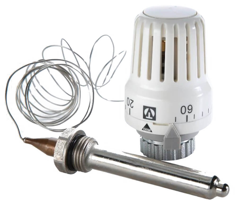 Термостатическая головка устанавливается так, чтобы она могла регулировать температуру батареи в зависимости от температуры комнаты. В связи с тем, что подобные устройства отличаются приличными размерами, такая установка связана с определенными трудностями. Решить подобную проблему может терморегулятор с выносным датчиком. Датчик температуры имеет связь с головкой за счет тонкой капиллярной трубочки. Это позволяет установить датчик в удобном месте.