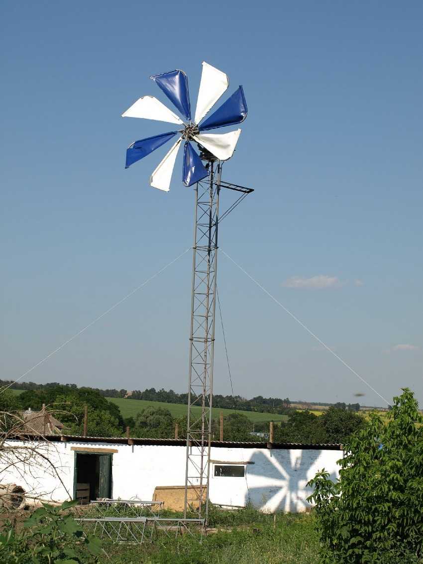 Если лопасти традиционных ветряков изготавливают из твердых материалов, то в парусном они наоборот — из материалов мягких. Подходит любая плотная ткань, например, брезент. Часто в таких конструкциях используется нетканые слоистые материалы. Внешне парусный ветрогенератор похож на большую детскую вертушку.