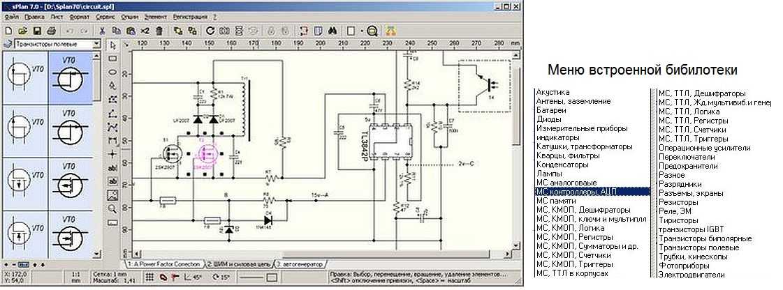 Бесплатная программа для черчения электрических схем sPlan7.0