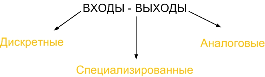 Специализированные входы/выходы – не унифицированы, применяются для подключения нестандартных датчиков и исполнительных устройств со специфическим уровнем сигнала, питанием и программной обработкой.