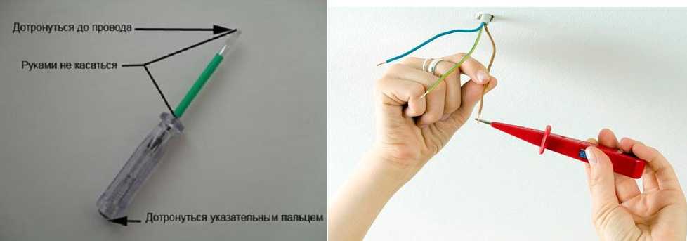Определение фазного провода при помощи индикаторной отвертки