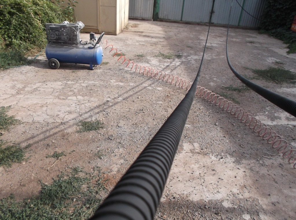 Поэтому, первое чем мы занялись после замеров и закупки материалов — покрасили металлорукав.