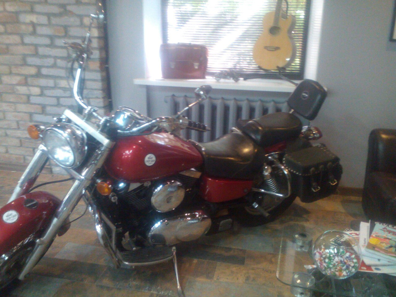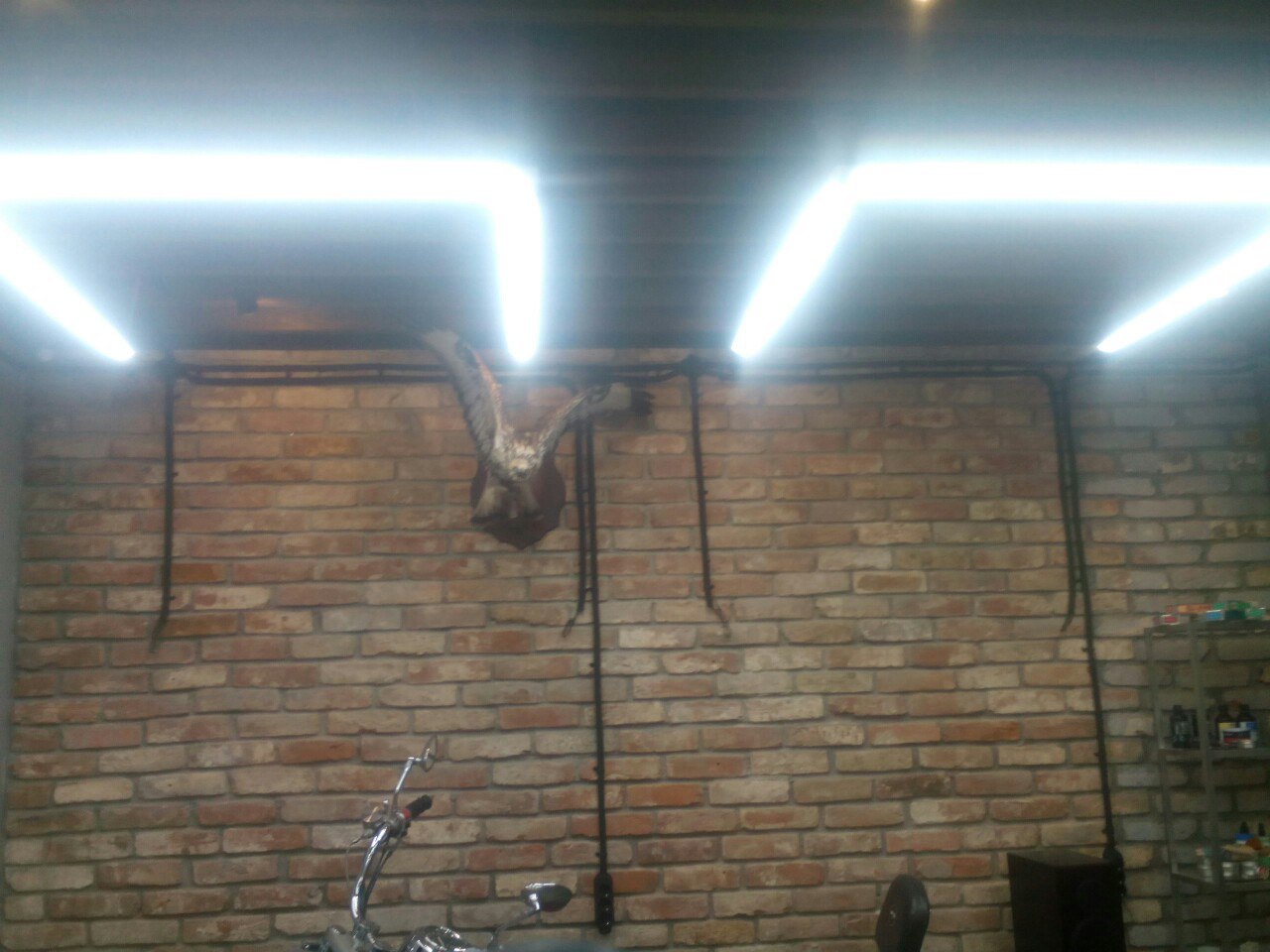 Повесили чучело, поставили байк на место. Кресла еще в пути. Когда приедут останется повесить зеркала и бра.