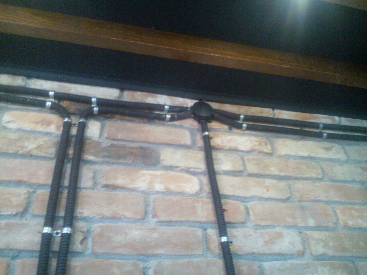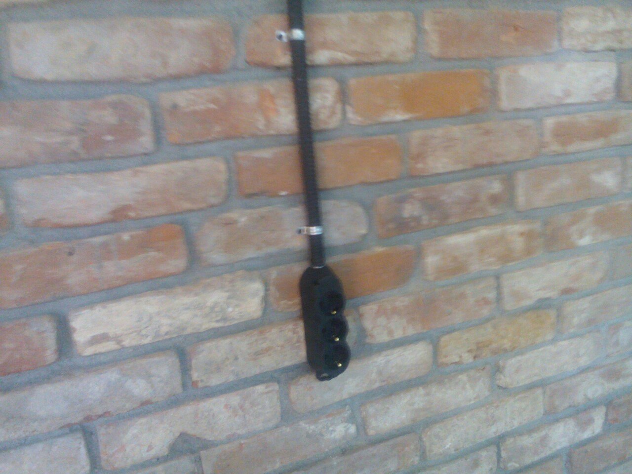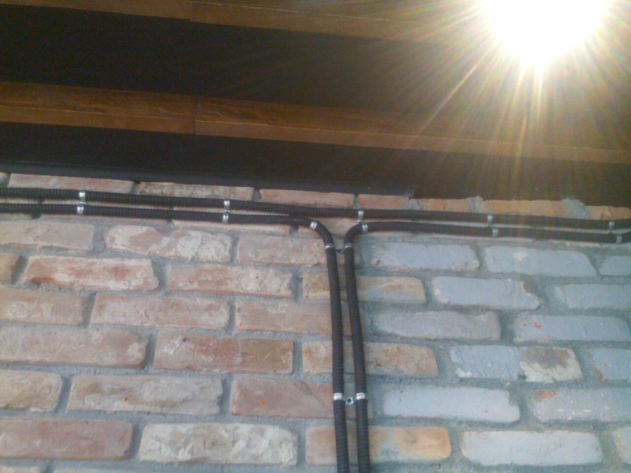 А металлорукав на кирпичную стенку — самое оно.