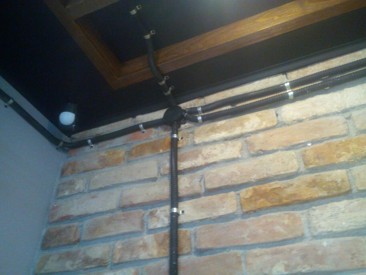 Проводка в пластиковой гофре — для подсобного или технического.