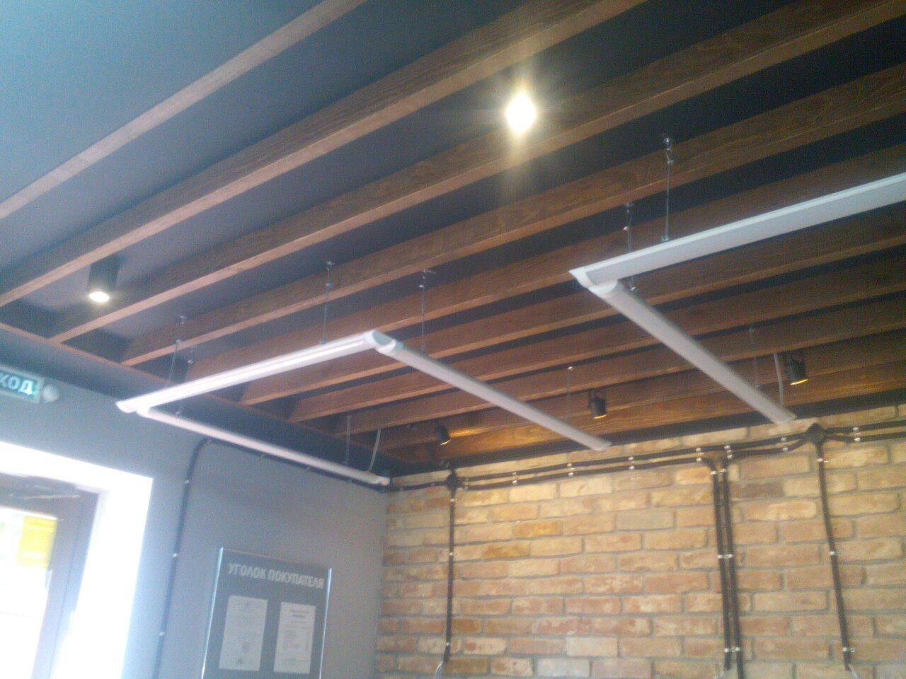 Заказчик же пожелал светильники от потолка дистанцировать — опустить на двадцать сантиметров.
