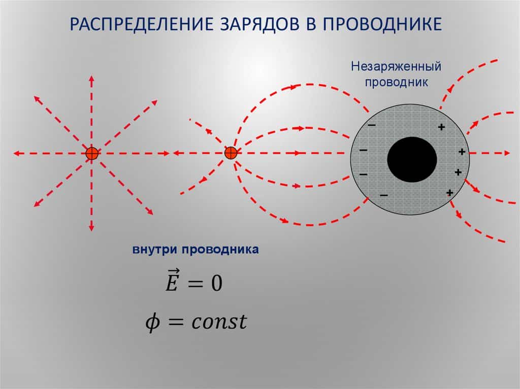 При отсутствии электрического поля свободные точечные заряды пребывают в равновесии. Они осуществляют колебания, взаимодействуя между собой и с ионами такого же, либо противоположного знака. Однако картина равновесия вмиг нарушается при попадании металла в электрическое поле. На заряженном проводнике возникает электрическое смещение.
