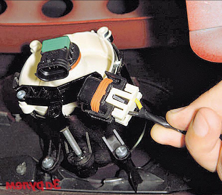 Чуть-чуть вдавливаем вовнутрь, чтобы отщелкнулись защелки, и просто тянем лампу из ПТФ. Если она не идет, добавляем к процессу покачивание.