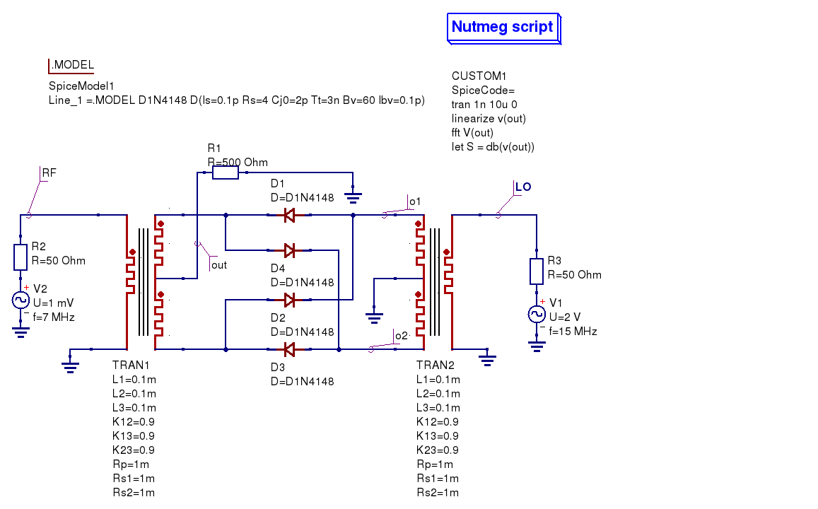 The Spice4qucs subsystem supports Xyce single tone and multi-tone Harmonic Balance (HB).