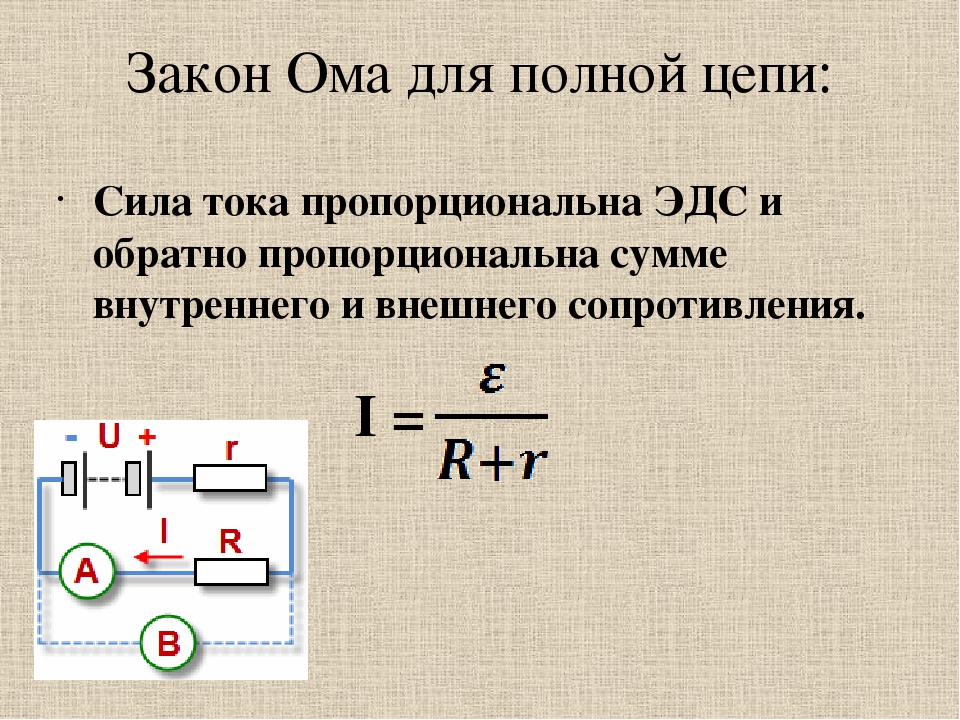 Расчет для полной цепи происходит по формуле I=e/R+r, где:
