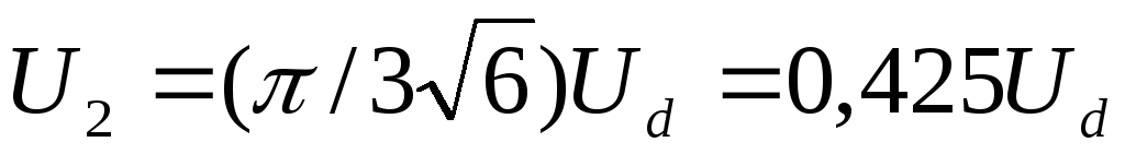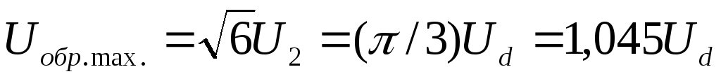 - максимальное обратное напряжение Uобр.макс на отдельном диоде или тиристоре (т. е. на вентиле). Это напряжение принято выражать через напряжение Uср;