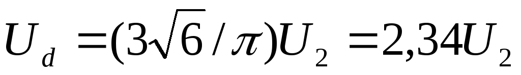 Каждая из двух групп выпрямителя повторяет работу трехфазного выпрямителя со средней точкой, поэтому при таком же значении напряжения вторичной обмотки трансформатора