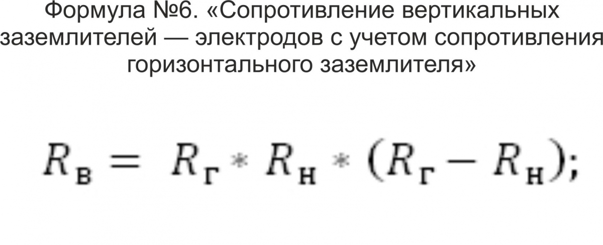 Во 2 случае Lг = a . Теперь у нас есть все данные для определения сопротивления стержней, расположенных перпендикулярно к земле — Rв, учитывая горизонтальные заземлители. Для этого: