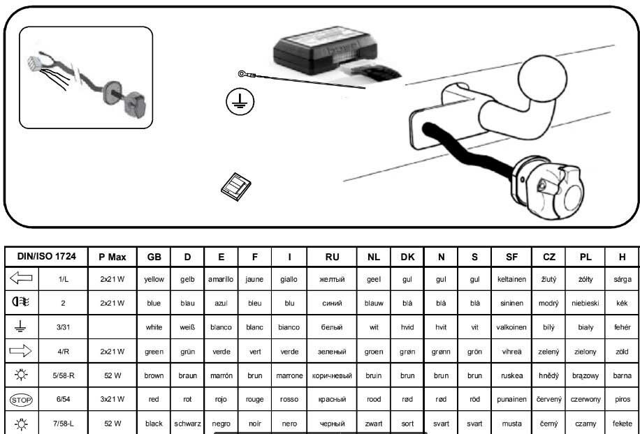 В некоторых государствах для упрощения подключения выпускают инструкции – цветовые схемы, с помощью которых можно быстрее соединить розетку, выходящую из автомобиля, с вилкой из прицепа.