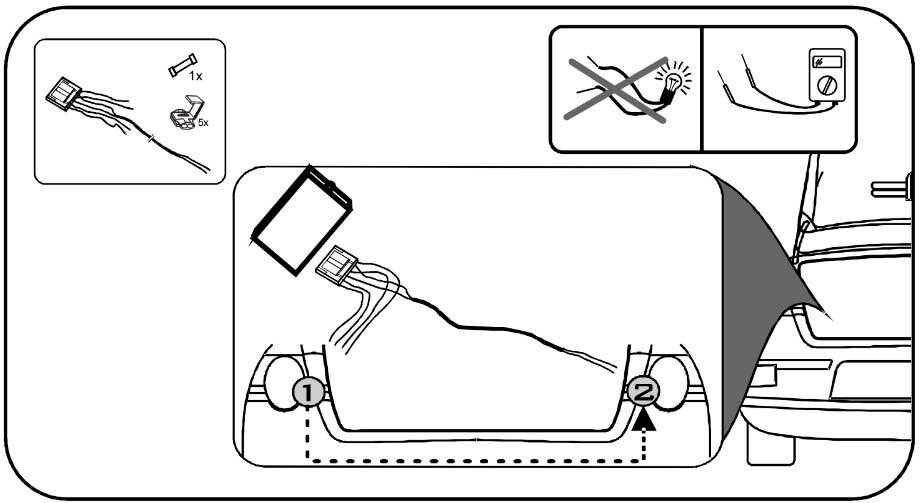 Проводку необходимо подсоединить к цепям, проводящим сигнал, иначе сигналы с согласующего блока не смогут перейти к задним осветителям буксируемого транспорта.