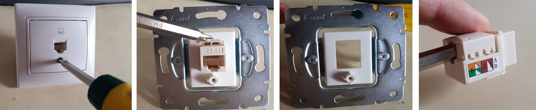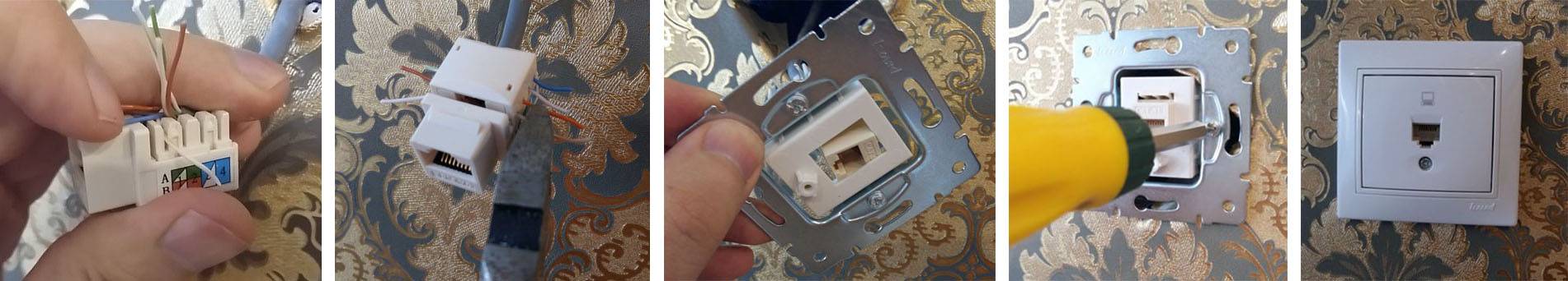 В рядах интернет-розеток для скрытой установки редко, но встречаются модификации с клеммными колодками. С принципом их установки тоже несложно разобраться