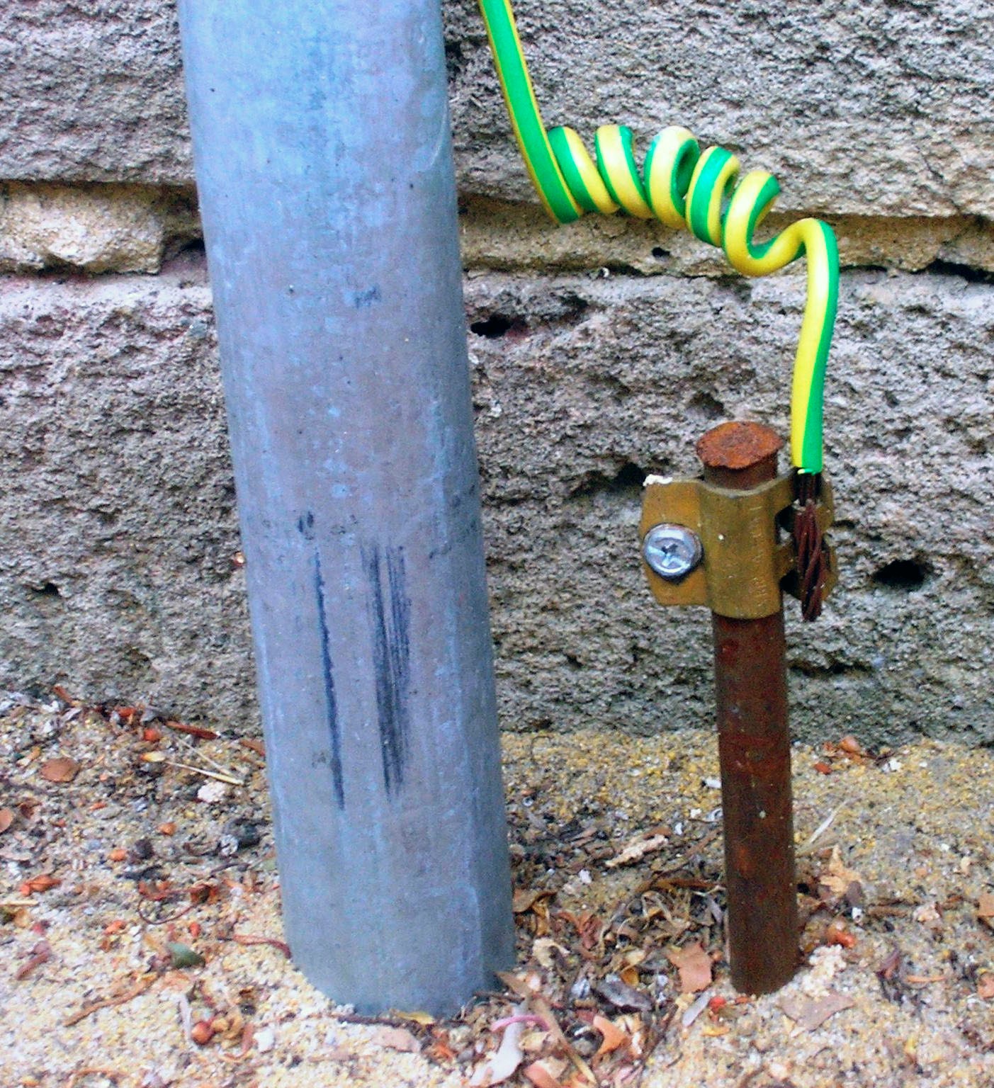Так выглядит заземляющее устройство. Комбинация желтого и зеленого цветов изоляции обязательна только для провода РЕ и прочих защитных проводов