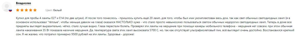 Чтобы уменьшить раздражающее воздействие света, рекомендуется «разбавлять» свет от LED-источников лампами накаливания небольшой мощности (до 60 Вт). Также можно задействовать светодиодные устройства, дающие теплый белый свет. Такие световые источники (без повышенного коэффициента пульсации) не причиняют вреда здоровью.