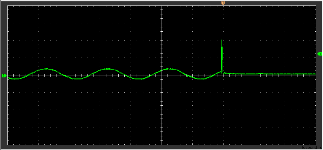 Рис. 3. Осциллограмма напряжения на катушке управляющего реле в схеме с установленной помехоподавляющей RC-цепочкой.