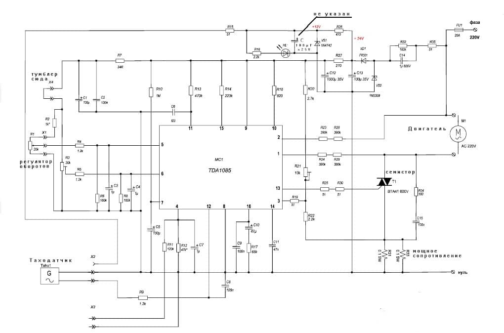 Один из наиболее популярных подходов – схема на базе TDA1085 (этот микроконтроллер используется многими производителями бытовой техники для управления электродвигателями, в качестве аналога можно рассмотреть российскую микросхему КС1027ХА4).