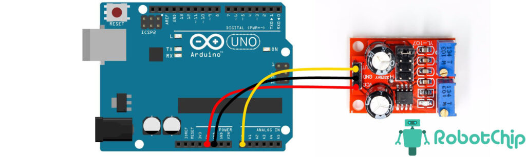 Подключение:Для наглядности подключим модуль генератора импульсов NE555 к аналоговому выводу Arduino, принципиальная схема подключена показана ниже.