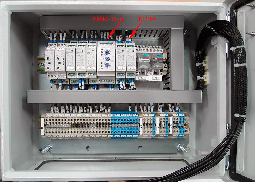 В различных моделях реле контроля фаз применяются исполнительные органы двух типов, коммутирующие нагрузку непосредственно или воздействуя на промежуточный элемент – магнитный пускатель.