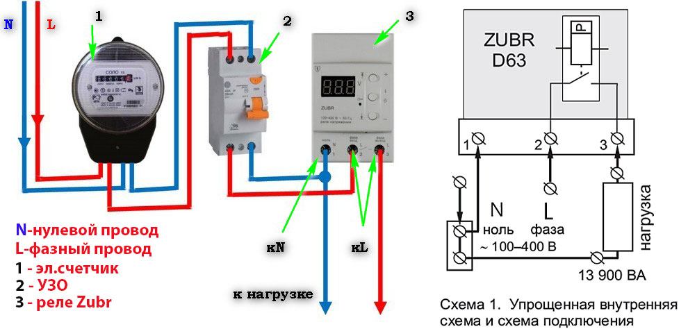 Стандартная схема установки РН в распределительный щиток показана на рисунке. Это наиболее простая защита от скачка напряжения.