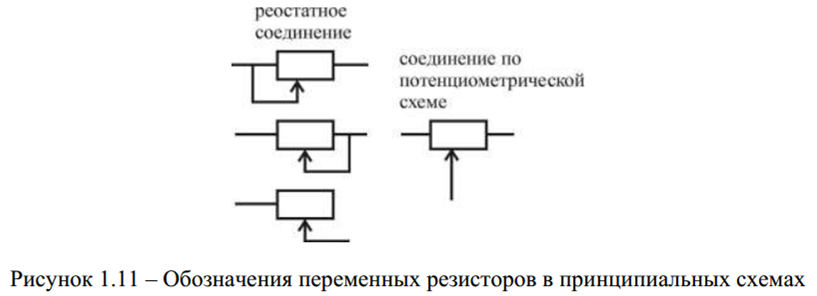 Различают два способа подключения переменных резисторов: реостатное и потенциометрическое (показано на рисунке 1.11).